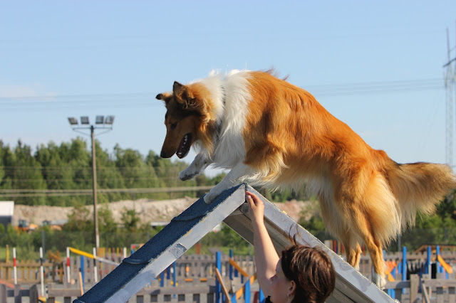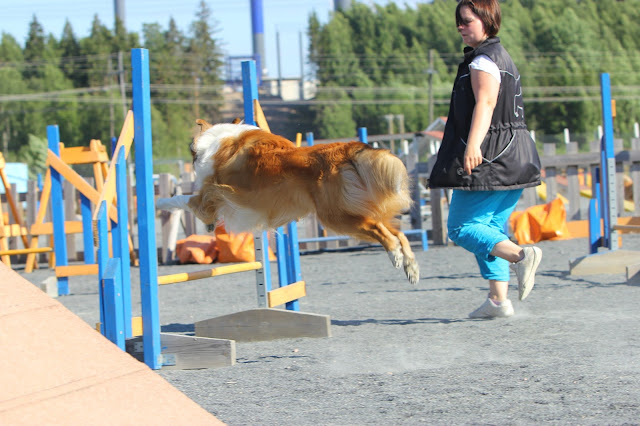 Ja meillähän oli myös sunnuntaina taas agility jedinkaa. Sielläkin oli nyt keppejä ja kontakteja, puomi ja A. ja lisäksi treenattiin takaakiertoa ja valssia. Ei ole helppoa ei :) kouluttaja kehui että Jedi on selvästi syttynyt tähän :) ja saadaan jatko kurssikin ja ehkä saadaan lupa mennä keskenään treenimään hallille :)